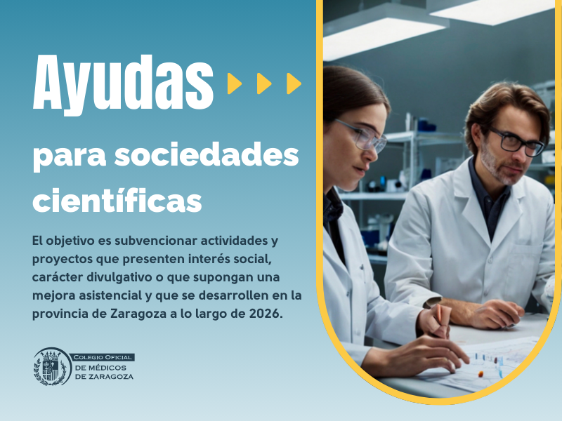 El Colegio de Médicos de Zaragoza convoca las ayudas 2026 para proyectos de sus Sociedades Científicas