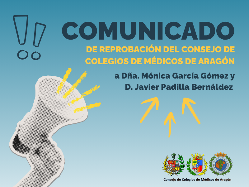 Comunicado de reprobación del Consejo de Colegios Oficiales de Médicos de Aragón a Dña. Mónica García Gómez y D. Javier Padilla Bernáldez