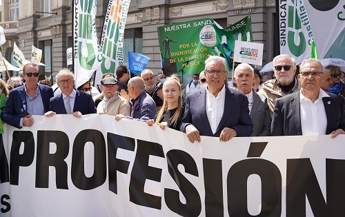 Además, diferentes secretarios generales autonómicos y representantes de CEEM y OMC señalaron el resto de reclamaciones, que pasan por la protección a los profesionales, recuperar la pérdida de poder adquisitivo, restablecer la jornada de 35 horas en toda España, dignificación retributiva de las guardias, acabar con la precariedad y temporalidad, activar, homogeneizar y ampliar la carrera profesional en toda España, mejorar el sistema de Formación Sanitaria Especializada, una jubilación flexible entre los 60 y 70 años, garantizar la titulación, la creación de la especialidad de Urgencias y mejorar la formación de Familia, que las lenguas cooficiales no sean requisito para trabajar en el SNS, un plan urgente para la Atención Primaria con su financiación finalista, tolerancia cero contra las agresiones a sanitarios y la incentivación de los puestos de difícil cobertura, como señaló el secretario general, Gabriel del Pozo, para cerrar el discurso.