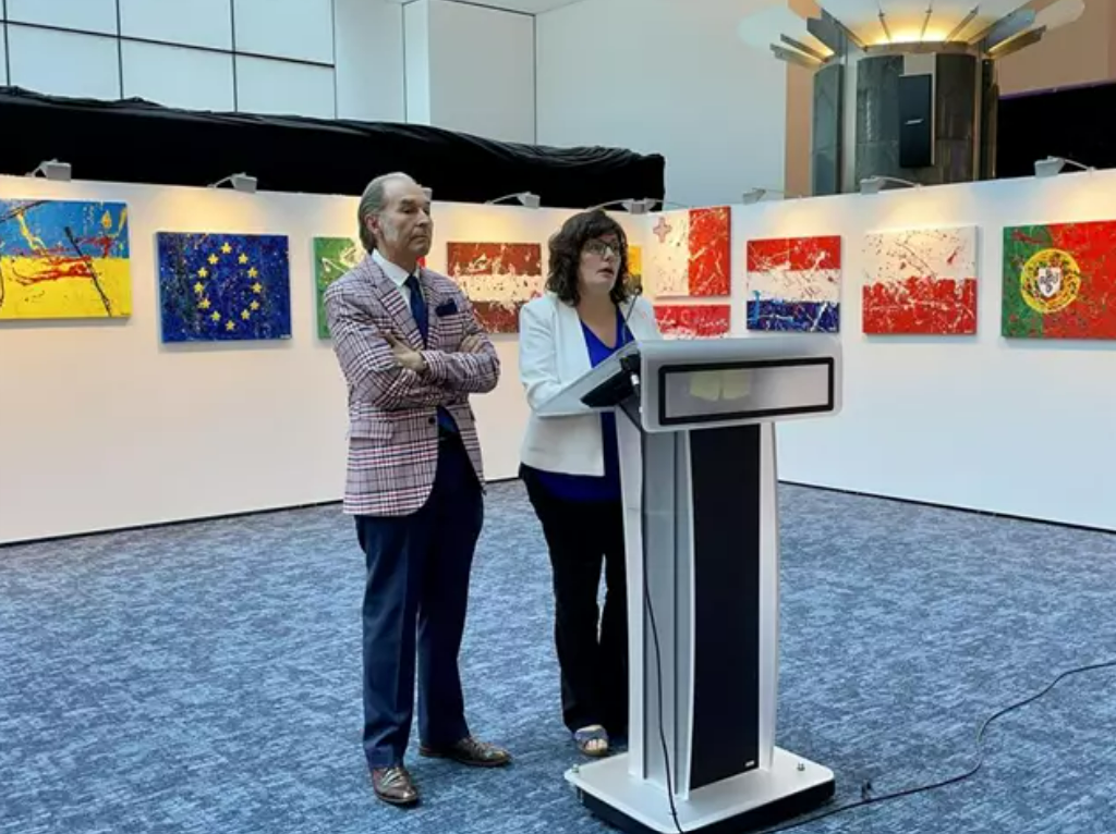 El Parlamento Europeo de Bruselas ha acogido una exposición del artista aragonés y vicepresidente del COMZ, José Manuel Cardiel. La muestra, que ha podido verse hasta el 9 de septiembre, fue inaugurada por la eurodiputada Isabel García Muñoz. Bajo el título 'Europa abraza al pueblo ucraniano', Cardiel ha expuesto un total de 27 lienzos que representan las banderas de todos los Estados miembros, así como dos lienzos con las banderas de la Unión Europea y de Ucrania. Tal y como ha indicado el pintor, "este trabajo nace de la necesidad de insistir en que somos una comunidad y debemos afrontar los problemas que afectan a Europa de manera unida".