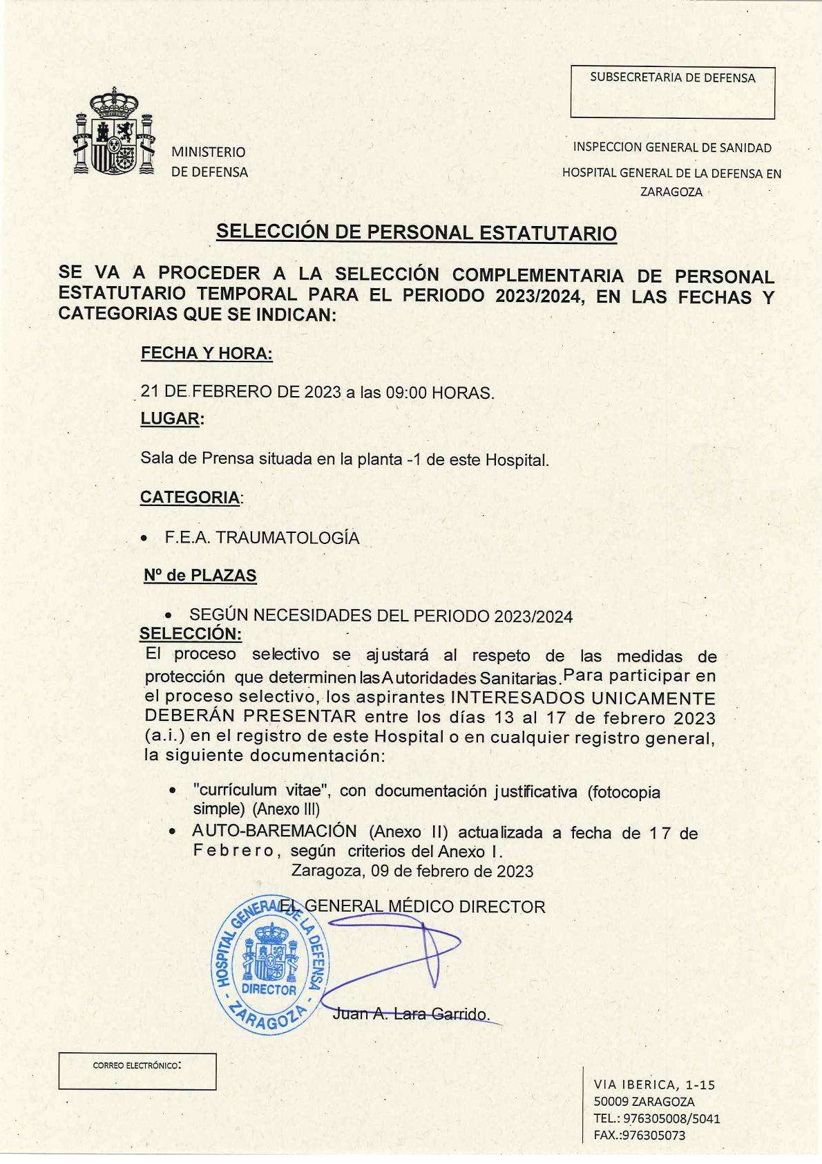 13 Feb 2023 Selección de personal estatutario F.E.A TRAUMATOLOGÍA febrero 2023 Noticias Selección de personal estatutario F.E.A TRAUMATOLOGÍA febrero 2023 Anexo I: Descripción del proceso selectivo Anexo II: Autobaremo Anexo III: CV Anexo IV: Requisitos FEA