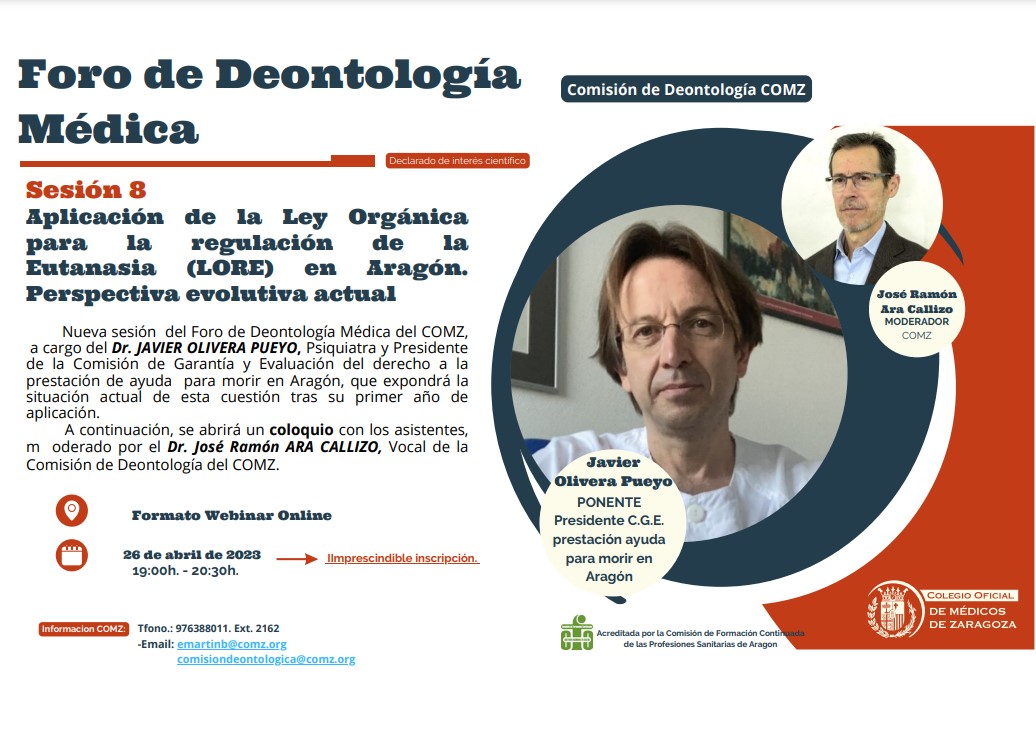 La sexta sesión del Foro de Deontología del Colegio de Médicos de Zaragoza analizará la ética, la deontología y la Medicina Personalizada. Será el próximo 29 de marzo a las 20:00h en formato webinar y para asistir será necesario reservar plaza previamente.