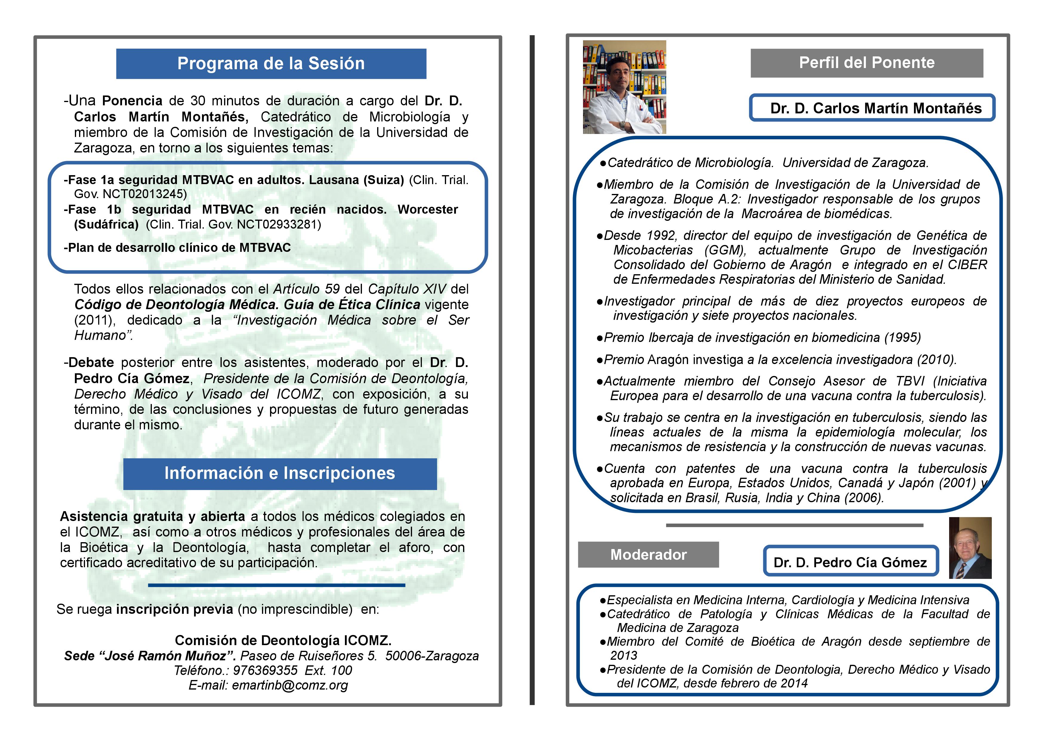 13 Feb 2017 El Foro Deontología aborda la nueva vacuna de la Tuberculosis Noticias El Foro Deontología aborda la nueva vacuna de la Tuberculosis