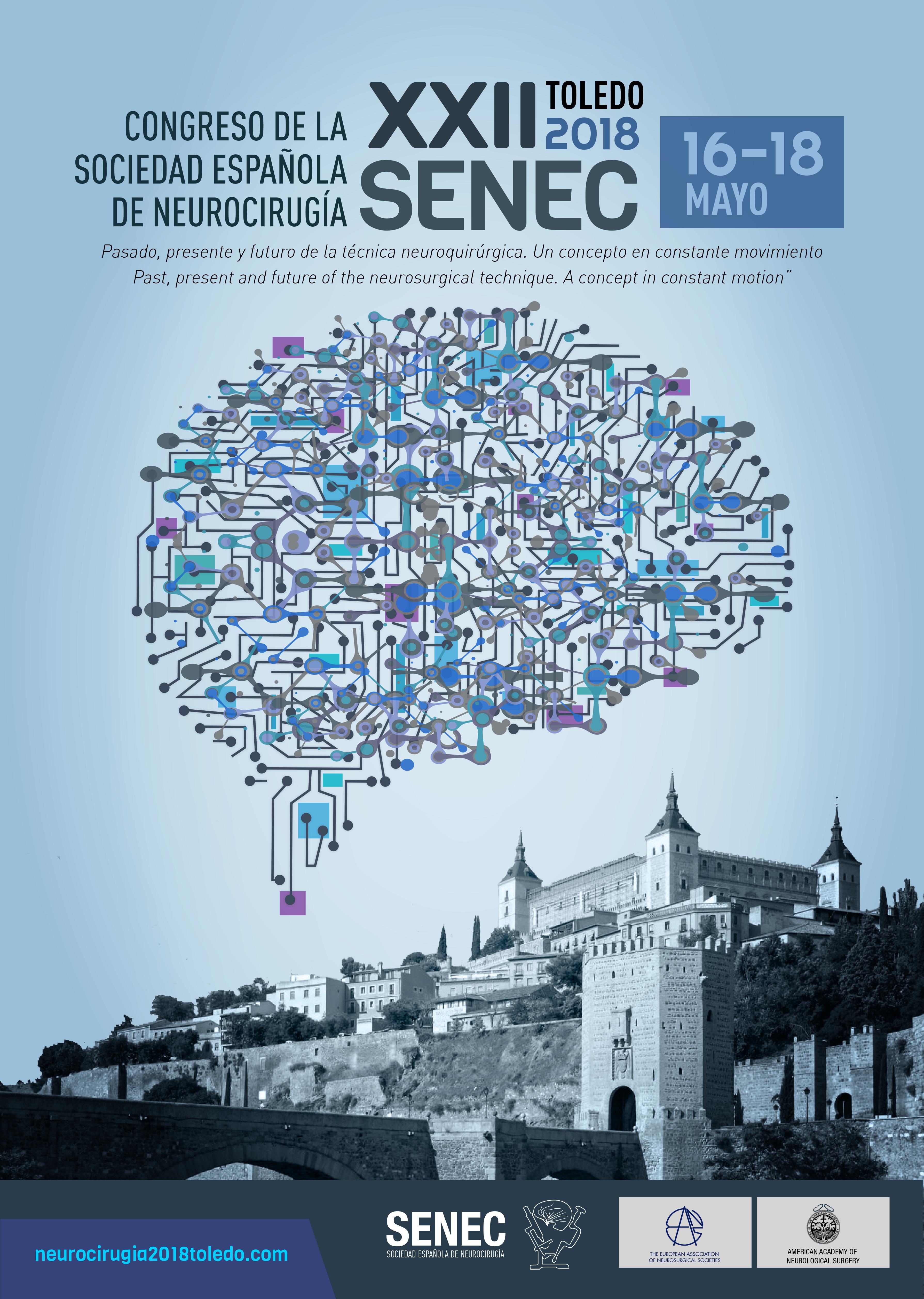 El XXII Congreso de la Sociedad Española de Neurocirugía (SENEC) se realizará los días 16, 17 y 18 de mayo de 2018 en Toledo. Esta edición estará dedicada al “Pasado, presente y futuro de la técnica neuroquirúrgica. Un concepto en constante movimiento”.