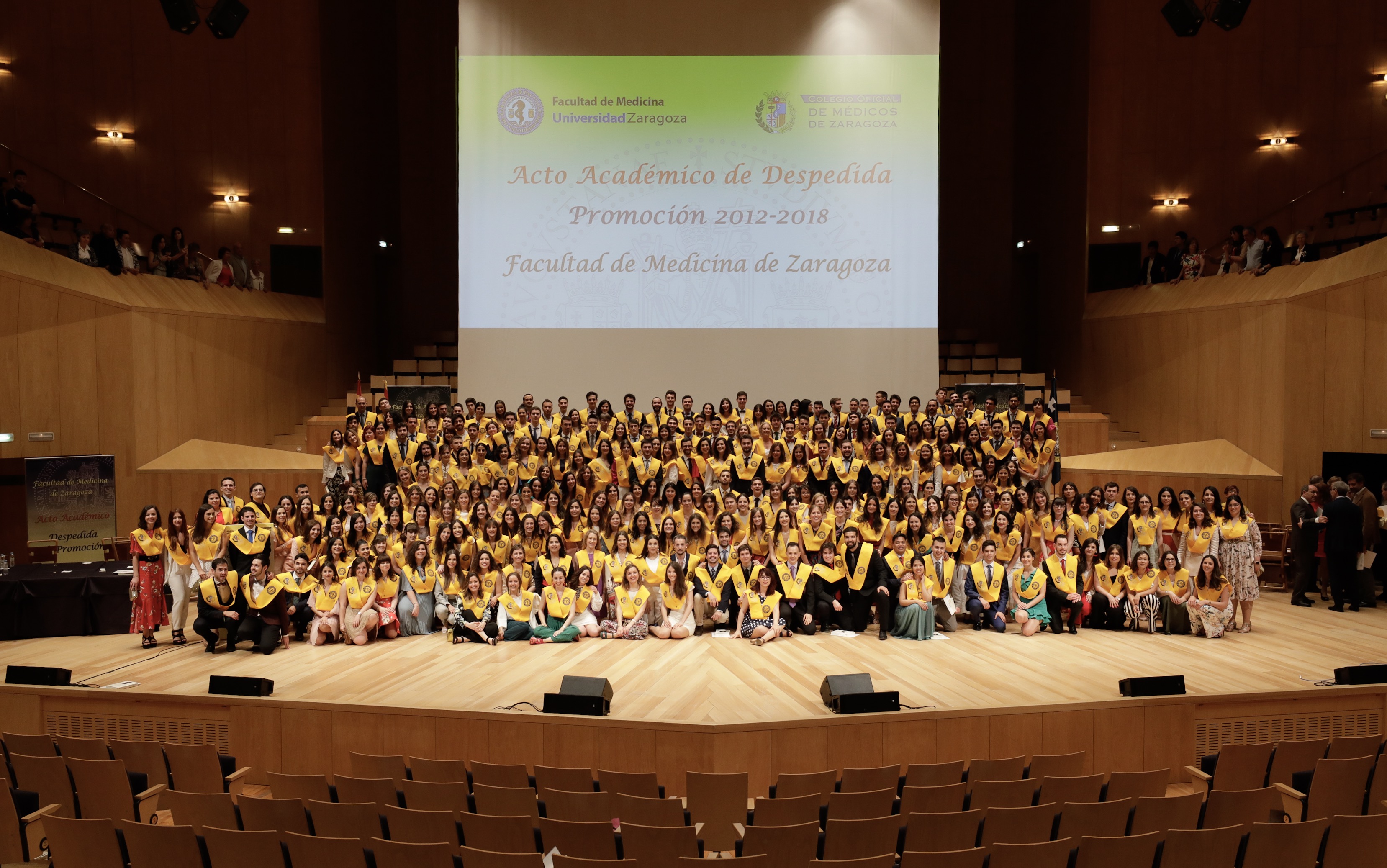 Se trata del acto académico de despedida de la promoción 2012-2018 que ha tenido lugar esta mañana en el Auditorio de Zaragoza y que organiza el Colegio de Médicos de Zaragoza en colaboración con la Facultad de Medicina de la Universidad de Zaragoza
