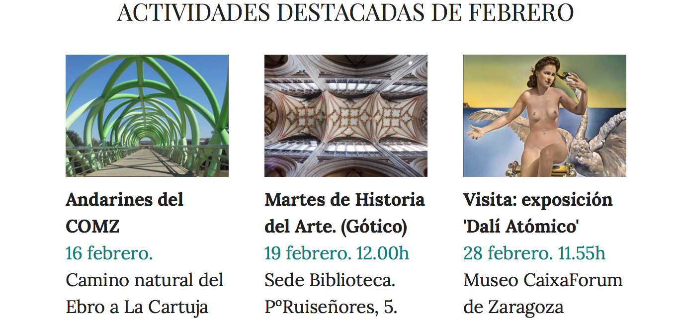 Desde el Colegio de Médicos hemos diseñado una agenda sociocultural para los colegiados mayores de 64 años. Todos los meses, esta agenda llegará actualizada por email para que de un sólo vistazo se conozca toda la programación sociocultural que ofrece el Colegio y no se pierda la oportunidad de participar en ella.