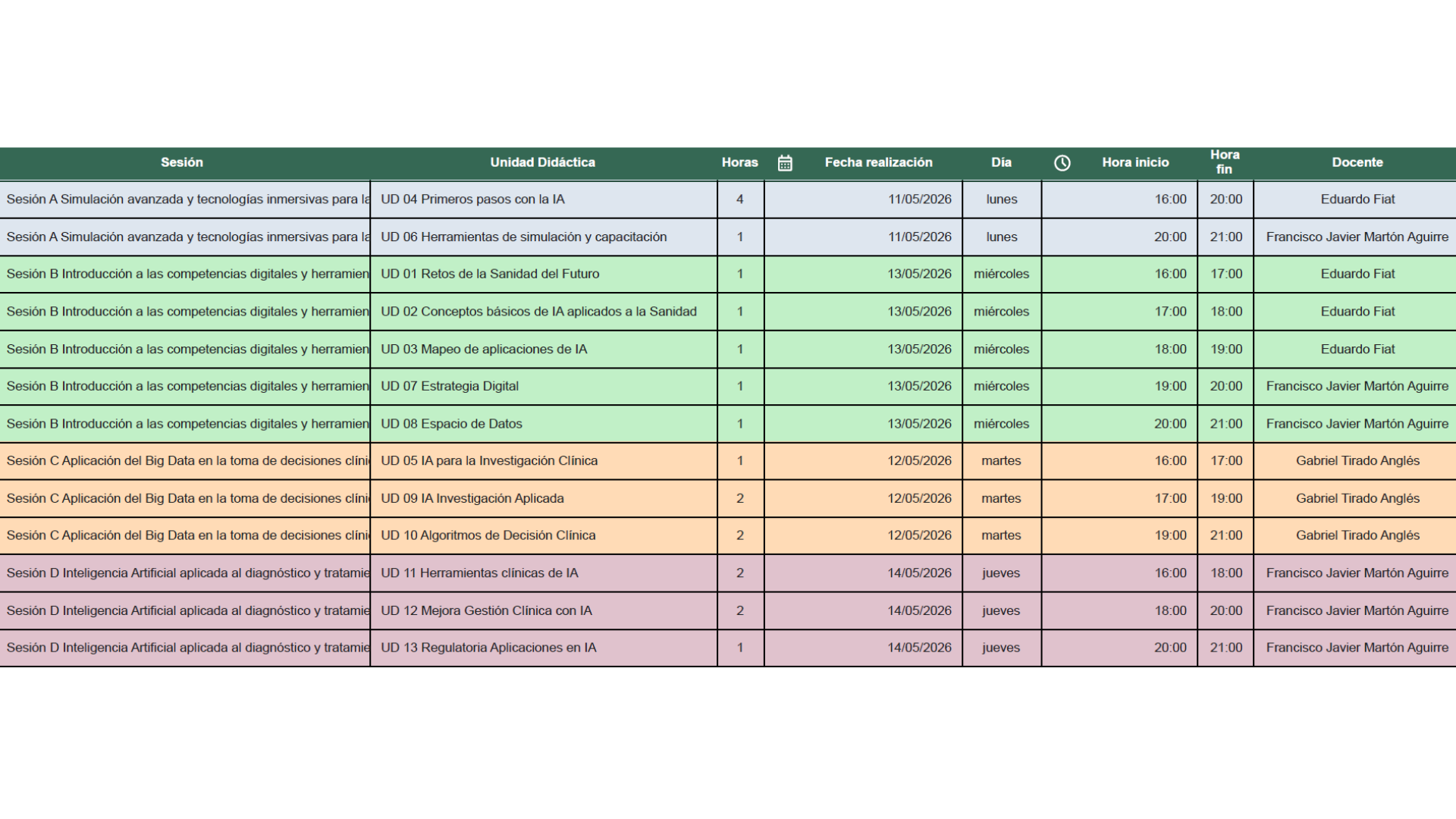 - Sesión D (14 de mayo): Inteligencia artificial aplicada al diagnóstico y tratamiento