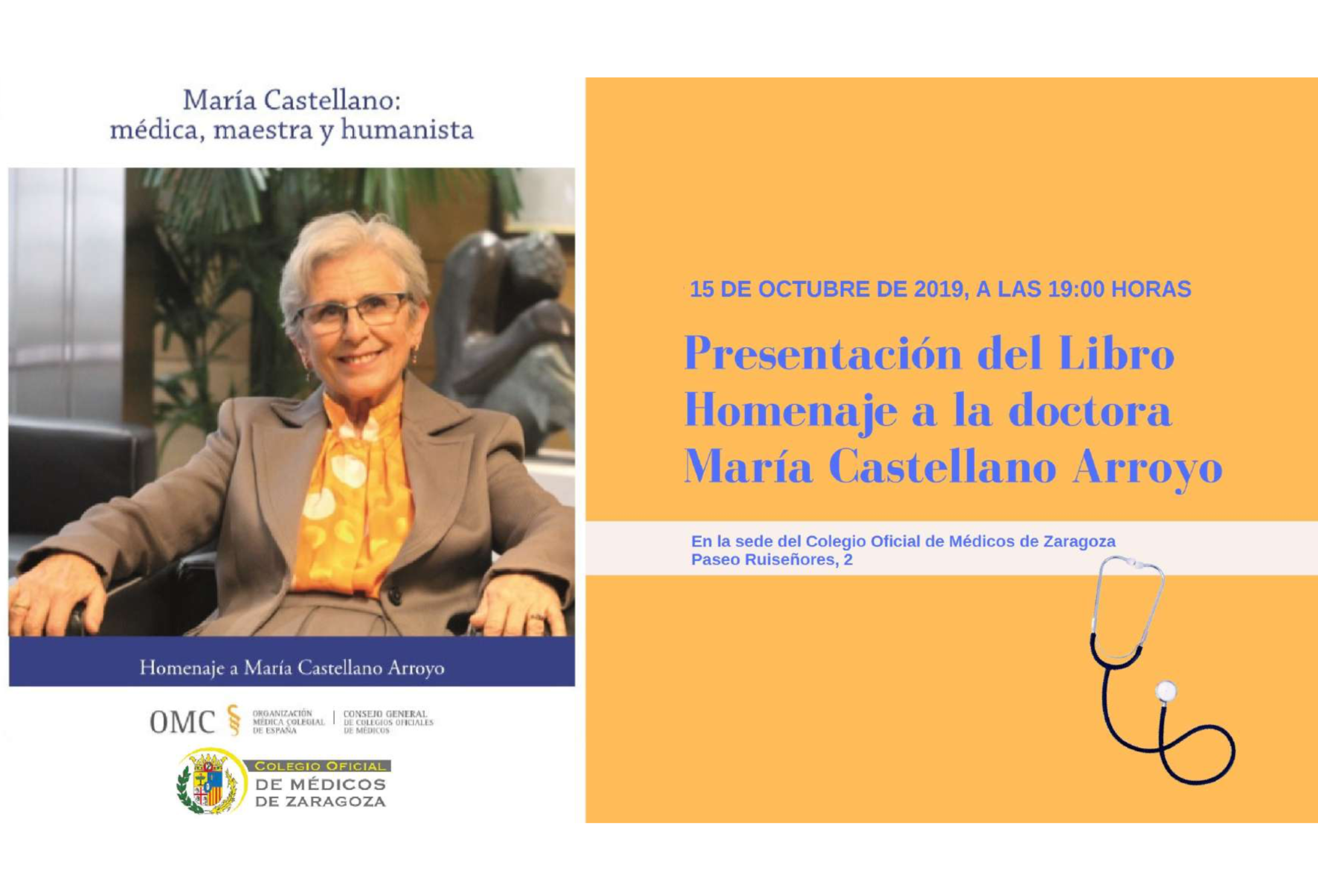 El Colegio de Médicos de Zaragoza acoge la presentación del libro 'María Castellano Arroyo: Médica, maestra y humanista'. Esta obra ha sido editada por el Consejo General de Colegios Oficiales de Médicos (CGCOM) como homenaje a la Dra. María Castellano, primera mujer catedrática de una Facultad de Medicina en España y pionera en el abordaje de la violencia familiar y de género.