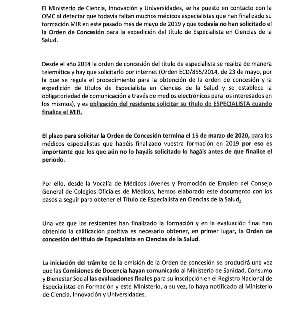 07 Ene 2020 Aviso para la tramitación del título de Especialista de Ciencias de la Salud Noticias Aviso para la tramitación del título de Especialista de Ciencias de la Salud INFORMACIÓN EN PDF DE CÓMO TRAMITAR EL TÍTULO