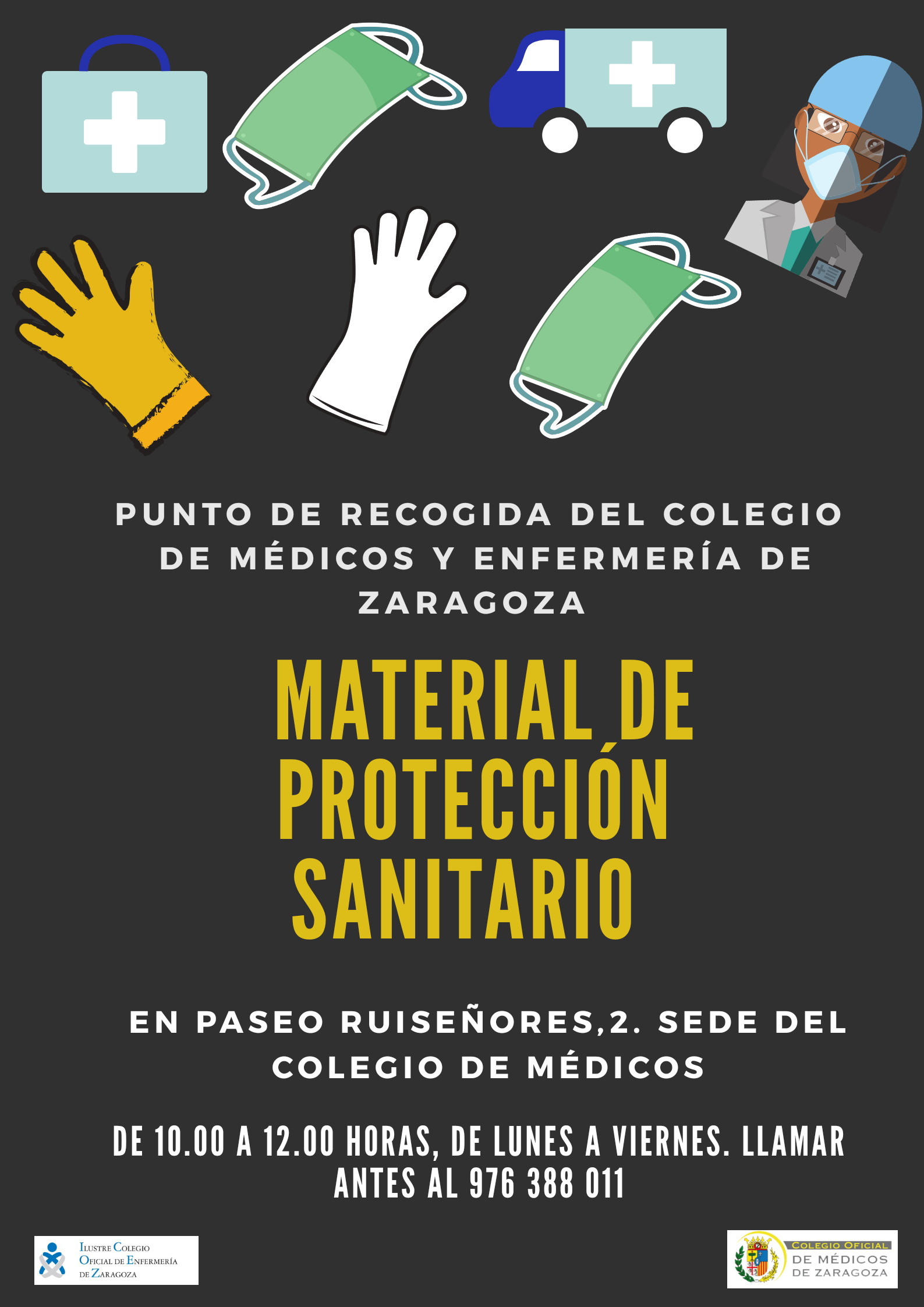 Todos aquellos ciudadanos que quieran colaborar con esta iniciativa pueden donar el material (mascarilla, guantes…) sin usar y debidamente protegido, de 10.00 a 12.00 horas, en la sede oficial del Colegio de Médicos de Zaragoza que está ubicada en Paseo Ruiseñores número 2.