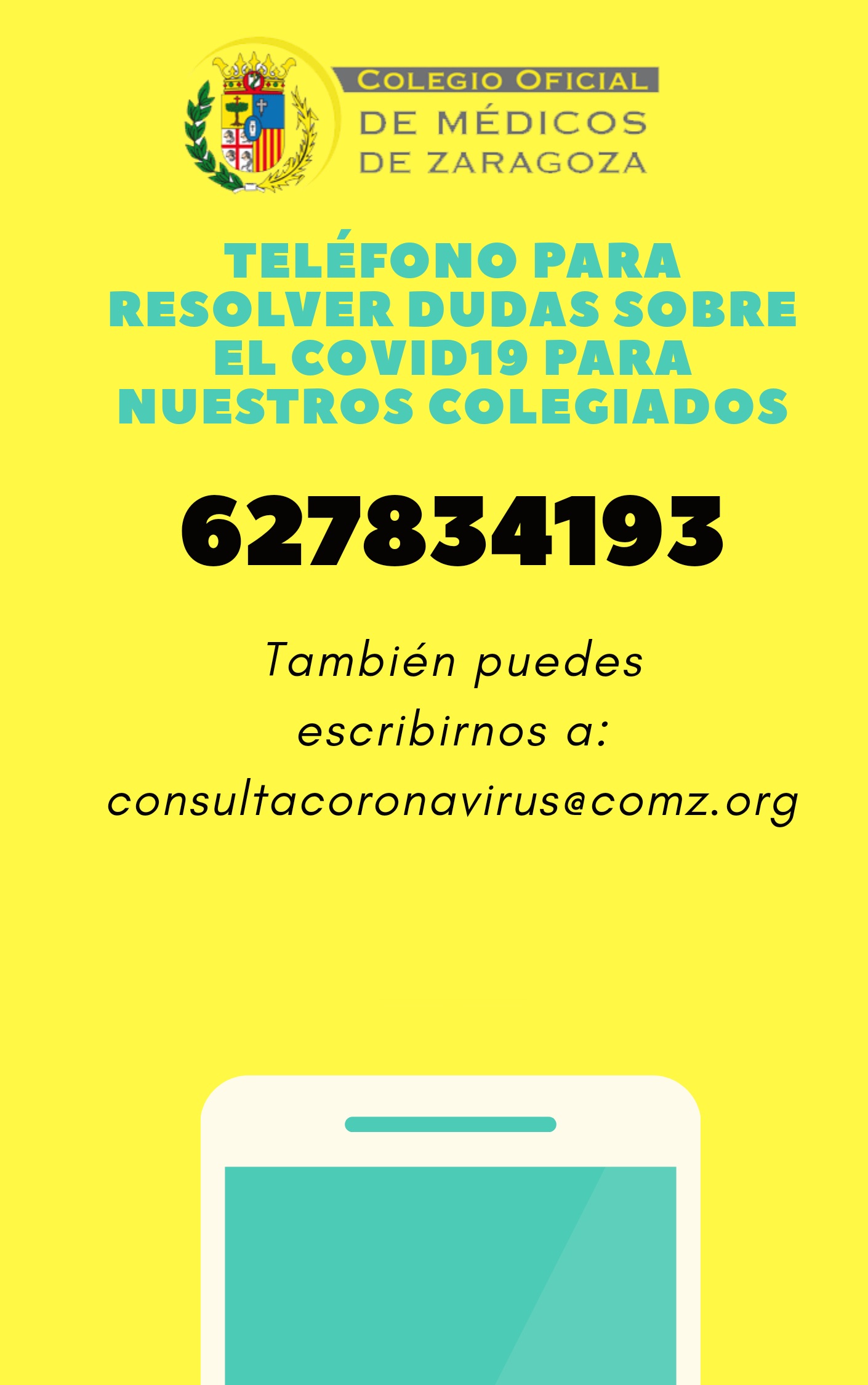 El teléfono es el 627834193 y el correo electrónico es: consultacoronavirus@comz.org