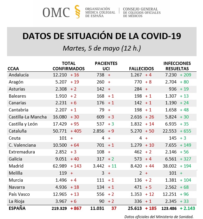 Actualización de los datos de situación del #COVID19 a fecha de martes 5 de mayo