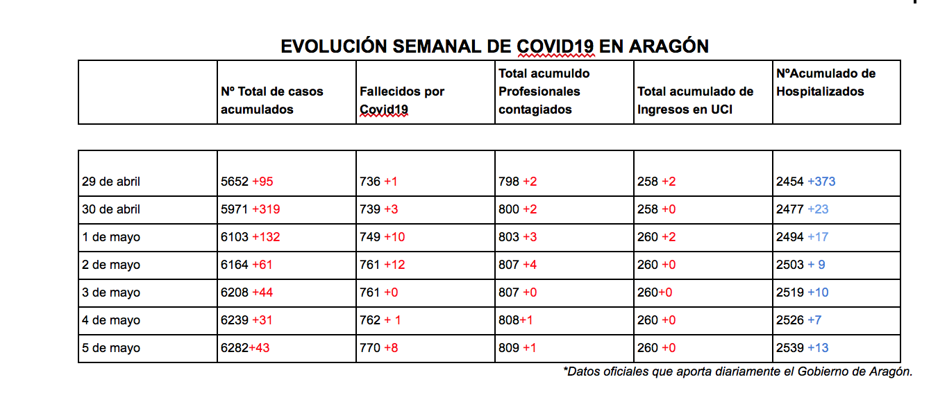 Actualización de los datos de situación del #COVID19 a fecha de martes 5 de mayo en Aragón y en España.
