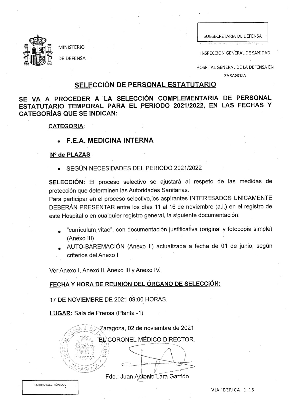 08 Nov 2021 Convocatoria para FEA de la especialidad de Medicina Interna. Noticias Convocatoria para FEA de la especialidad de Medicina Interna. ANEXO 1 ANEXO2 ANEXO 3 ANEXO 4